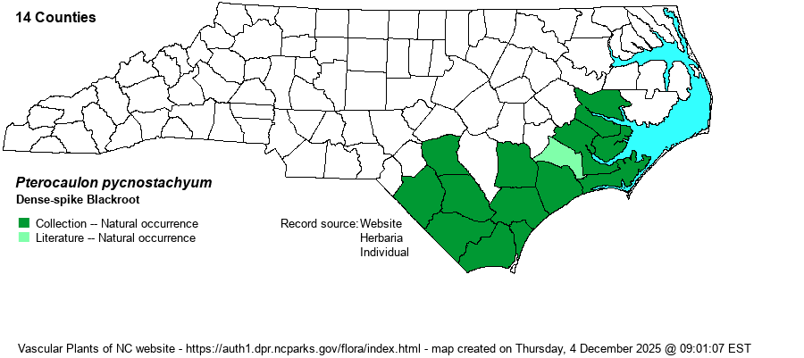 | Other Common Name(s) | Pineland Wingstem, Fox-tail Blackroot, Coastal Blackroot. Though there are other members of the genus in the Neotropics, it is usually just called "Blackroot" in the field in the Carolinas. | |
