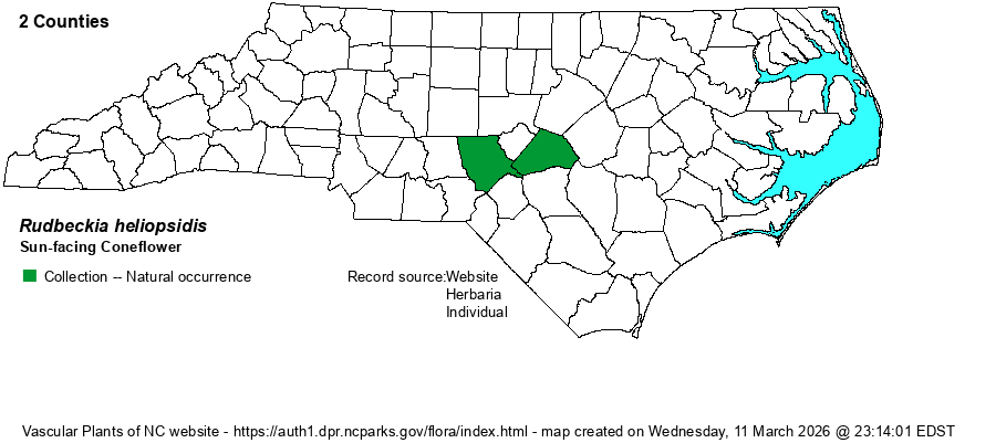 | Abundance | Currently very rare, known at present from a single site in northwestern Moore County. Thankfully, this population consists of several hundred individuals. It is State Endangered, and has been considered for Federal Listing in the past. With a Global Rank of just G2, Federal listing is certainly merited. Why this species is so localized and rare across its range, based on its varied and seemingly non-rare habitats, is baffling. | |
