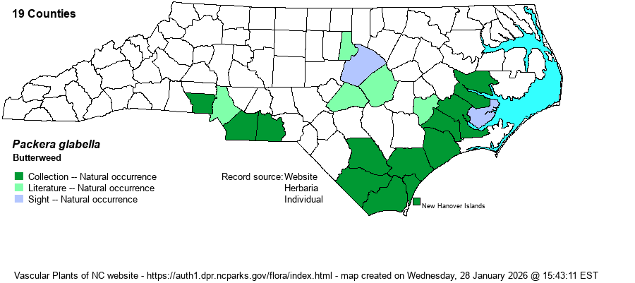 | Other Common Name(s) | Cressleaf Groundsel. Butterweed is a poor name, as it suggests no particular genus or family. But essentially all references and websites use this name, instead of "xxxxx Ragwort". Maybe it should be named as Butterweed Ragwort? | |