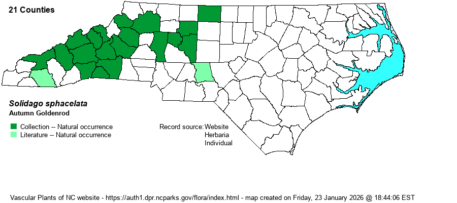 | Distribution | Mountains and western half of the Piedmont, ranging east to Rockingham and Montgomery counties.