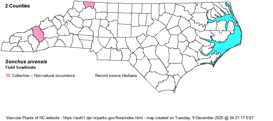 | Distribution | Mountains only. Collected twice: in 1958 in a railroad bed east of Canton, Haywood County; and in 2008 on a disturbed roadside in Alleghany County.
