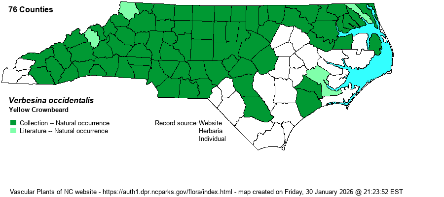 | Abundance | Common to abundant in the Piedmont and the northern Coastal Plain; common in the Mountains. Locally numerous in a few rich soil areas elsewhere in the Coastal Plain. Tends to be more numerous in the state than the similar V. alternifolia. | |
