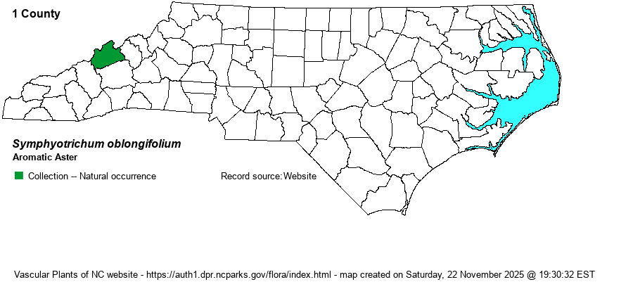 | Distribution | Mountains only -- limited to several locations on the north or east side of the French Broad River, Madison County. Specimens from Buncombe County (USCH) and Yancey County (CATU) lack images in SERNEC; they need to be vetted.