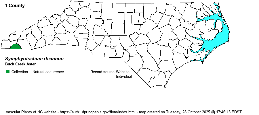 | Distribution | Mountains only: Clay County, Buck Creek Serpentine Barrens. First noted as a potentially new species in 1981, though not described until 2004.