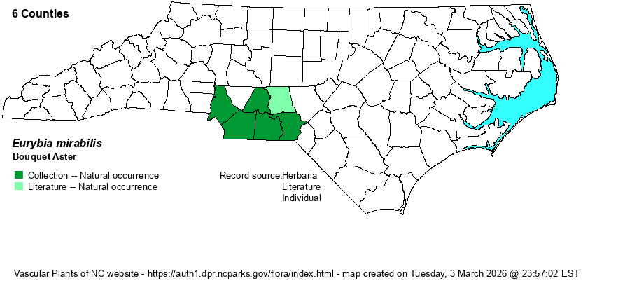 | Distribution | Restricted to the middle and lower southern Piedmont, north to Mecklenburg, Stanly, and Montgomery counties.