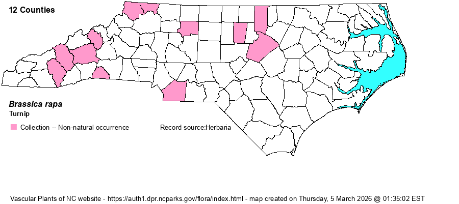| Identification | The species is most similar to B. napus, but that plant is glaucescent (vs. green in B. rapa) and the petals are longer. | |