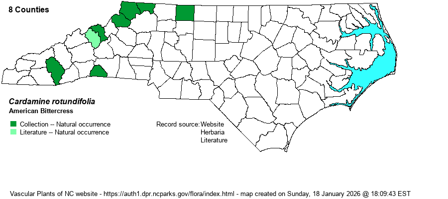 | Distribution | Scattered in the Mountains, mainly limited to the northern Mountains south to Yancey County. Also reported from Stokes County in the upper Piedmont.