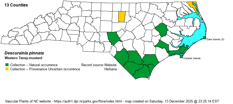 | Taxonomic Comments | Weakley (2018) lists two varieties in NC, the native var. pinnata, and var. brachycarpa, not native to the state. The Currituck County collections apparently relate to this latter variety. Note that RAB (1968) considered this latter variety as a full species -- D. brachycarpa.