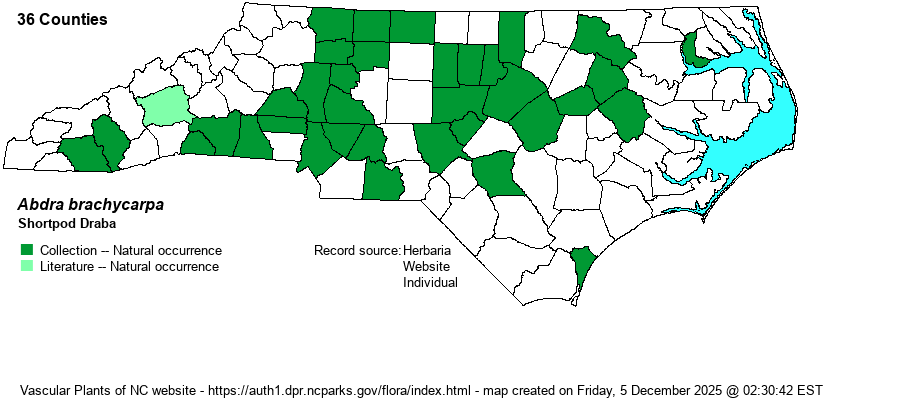 | Taxonomic Comments | Most references name this as Draba brachycarpa. Only one other species has been moved from Draba into Abdra.