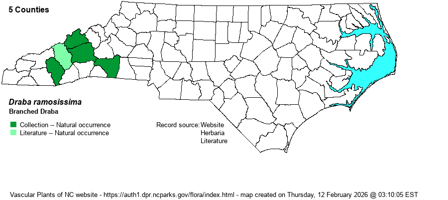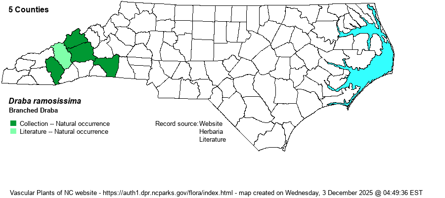 | Other Common Name(s) | Branched Whitlow-grass, Appalachian Draba, Rocktwist. The use of a genus name (i.e., Draba) for the group common name is a bit troubling, except in well known genera such as Magnolia. However, Branched Draba is, by far, the most frequently used common name. | |