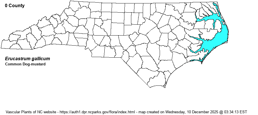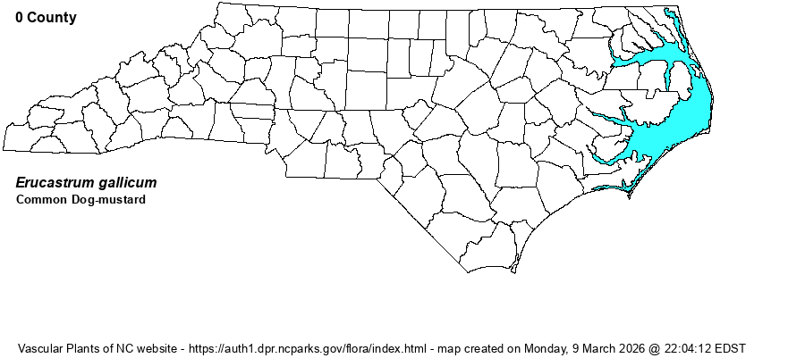 | Account for Common Dog-mustard - Erucastrum gallicum (Willdenow) O.E. Schulz | Only member of Erucastrum in NC. | |||||||||
