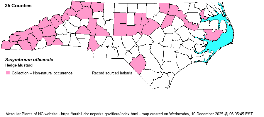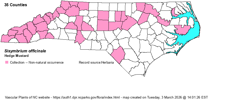 | Sisymbrium officinale | > | Sisymbrium officinale var. officinale | Radford, Ahles, and Bell (1968) | |