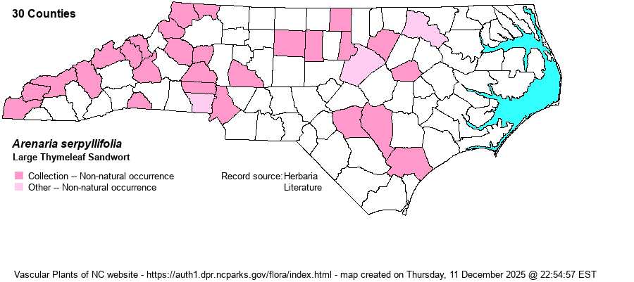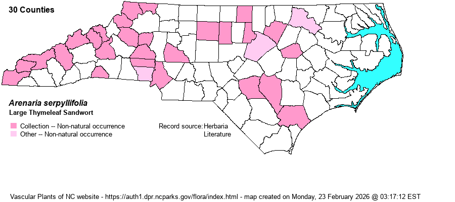 | Arenaria serpyllifolia | < | Arenaria serpyllifolia | Radford, Ahles, and Bell (1968) | |