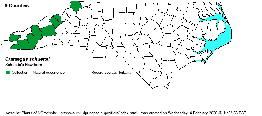 | Habitat | Unlike most hawthorns, this species favors rich to mesic forested slopes and forest interiors, at least in NC. | |
