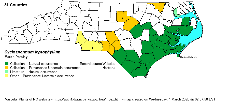 | Taxonomic Comments | Most older references named this species as Apium leptophyllum.