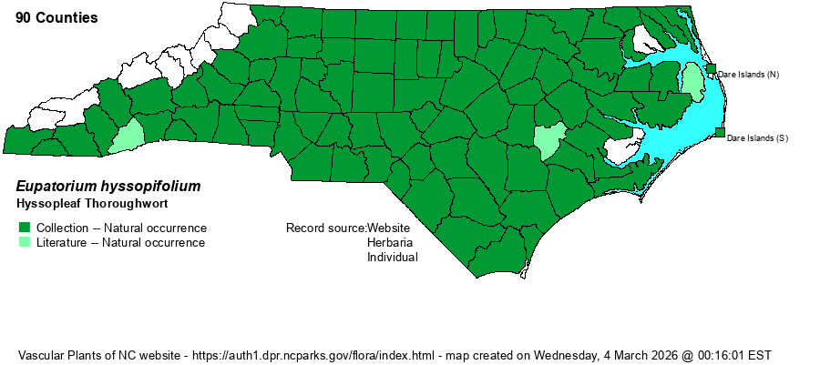 | Eupatorium hyssopifolium | = | Eupatorium hyssopifolium var. hyssopifolium | | |