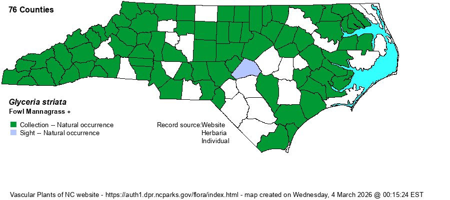 | Abundance | Fairly common to locally abundant over much of the state; absent to rare, however, in the Sandhills and other areas in the southwestern Coastal Plain. | |
