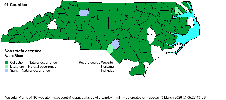 | Taxonomic Comments | A few references have this and other Houstonia species in the genus Hedyotis; most do not.