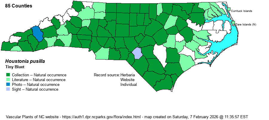 | Taxonomic Comments | Some references use the genus name of Hedyotis, but most use Houstonia.