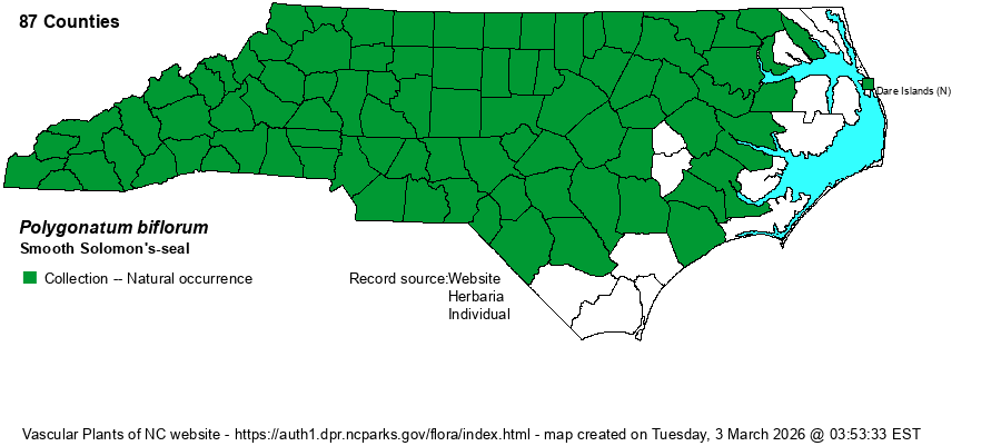 | Taxonomic Comments | Weakley (2018) and NatureServe list two varieties found in the state; P. biflorum var. commutatum is limited to the mountains and apparently the upper Piedmont, whereas the smaller P. biflorum var. biflorum is found statewide.