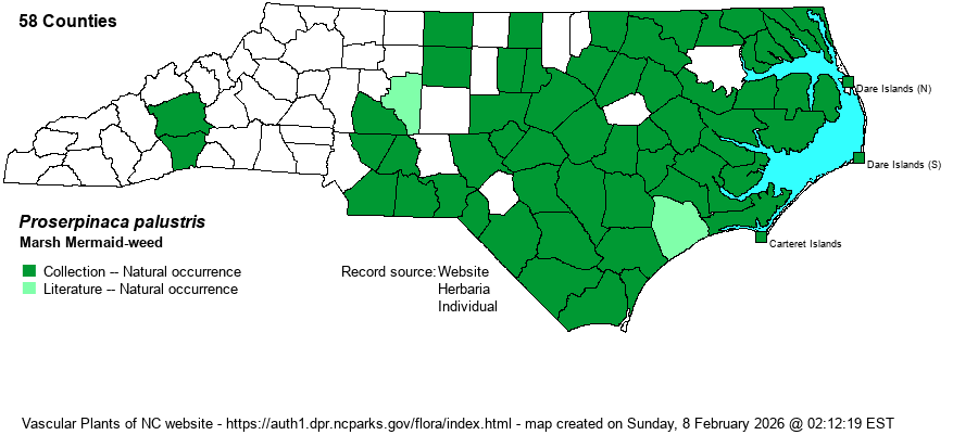 | Proserpinaca palustris | > | Proserpinaca palustris | Radford, Ahles, and Bell (1968) | |