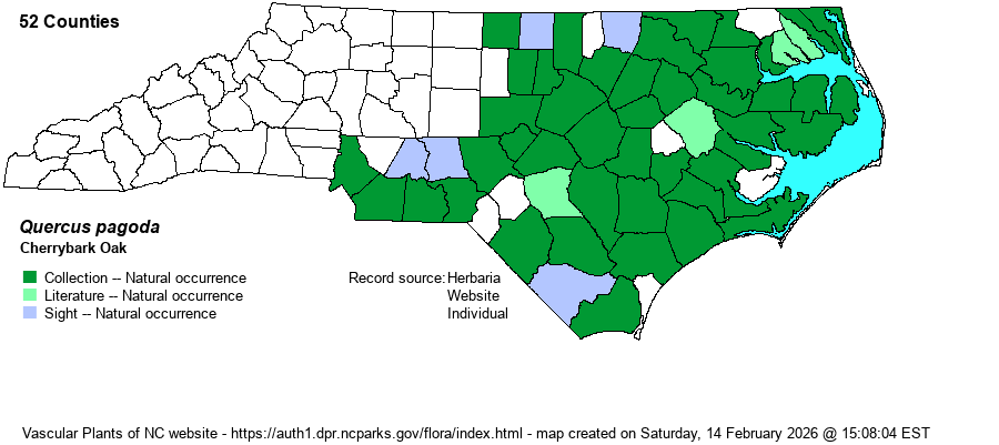 | Taxonomic Comments | Most biologists are fully aware that for much of recent history, the taxon was generally named as a variety -– Quercus falcata var. pagodaefolia. However, in recent decades nearly all references do consider the taxon as a valid species, as Q. pagoda.