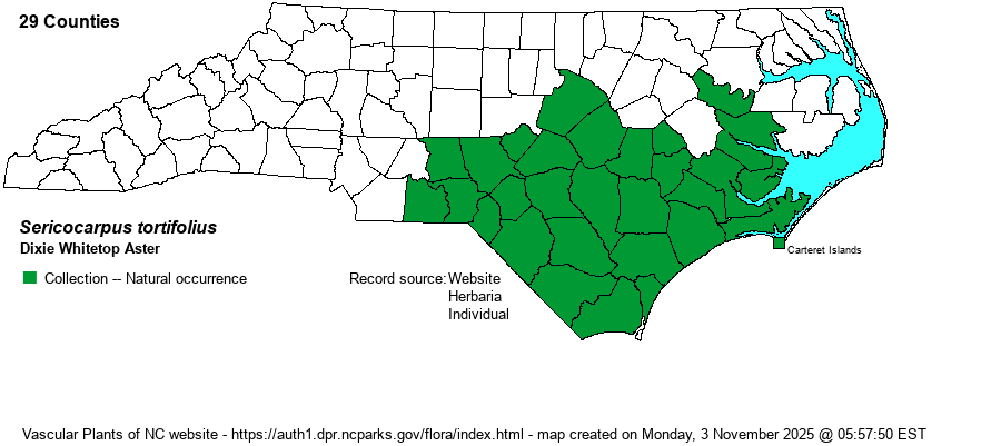 | Distribution | Coastal Plain and Sandhills; absent from the northeastern part of the state. Rare on the Outer Banks (southwest of Atlantic Beach). A specimen from Rutherford County proves to be S. asteroides.