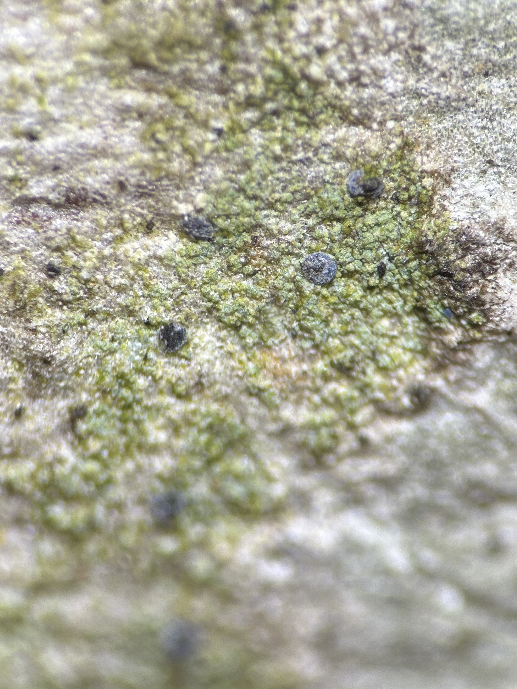 | Recorded by: Gary Perlmutter Alamance Co. Comment: |  | Recorded by: Gary Perlmutter & Meriel Goodwin Durham Co. Comment: Thallus with ascomata. Image by Gary Perlmutter |
