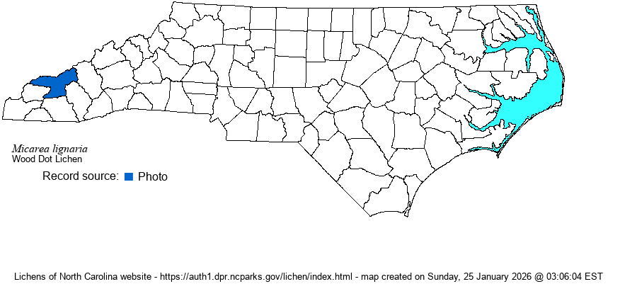 Photo Gallery for Micarea lignaria - Wood Dot Lichen