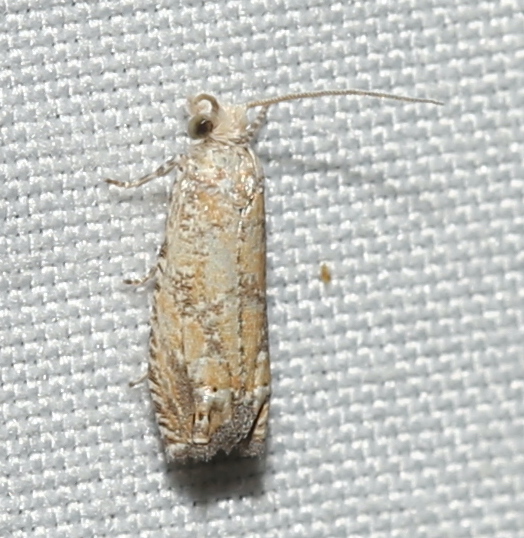with a distinctive forewing patterning that has brownish-gold to pale fawn interfascial areas and dark brown markings (Kearfott, 1905a; Wright and Gilligan, 2017). The head has long loose scales in the front and on top that are pale ocherish at the base and pure white at the tips. The second joint of the labial palp has long loose white scales that conceal the third segment and that are shaded basally and outwardly with pale ocherish (Kearfott, 1905a).
