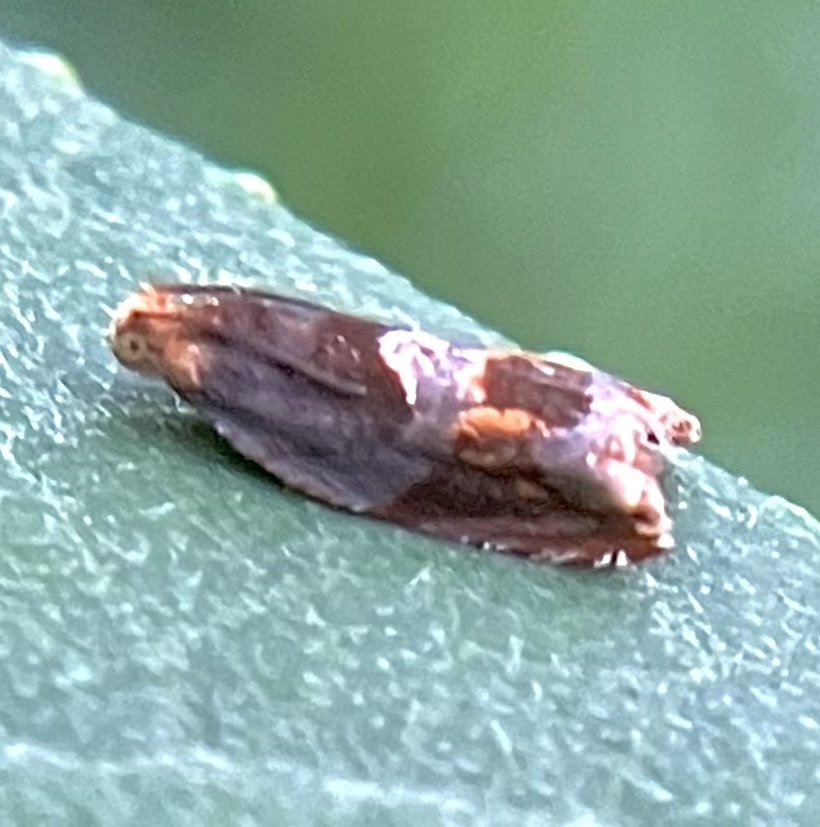 The following description is based in part on that of Forbes (1923). The head and tegulae are light orangish brown, while the palps are whitish and the antenna grayish brown with a rusty orange basal region. A basal patch covers the basal half of the wing and is dark grayish-brown with some lead-gray iridescence. Immediately behind this on the inner margin is a paler whitish patch that is overlain with a mixture of yellow-brown and chocolate scales. A broad median band of dark chocolate brown is present between the lighter dorsal patch and the tornus that extends inward to the middle where it narrows and runs obliquely forward to the costa. The costa has a series of paired whitish striae along the entire length that become more pronounced towards the apex, along with two or three large oblique, reddish-ocherous streaks on the apical third that extend towards the subapical region of the termen. The speculum has a whitish patch with an overlay of lead-gray scales, and the fringe is lead gray. The hindwing is smoky gray to grayish brown with a slightly paler fringe and a faint darker basal line.