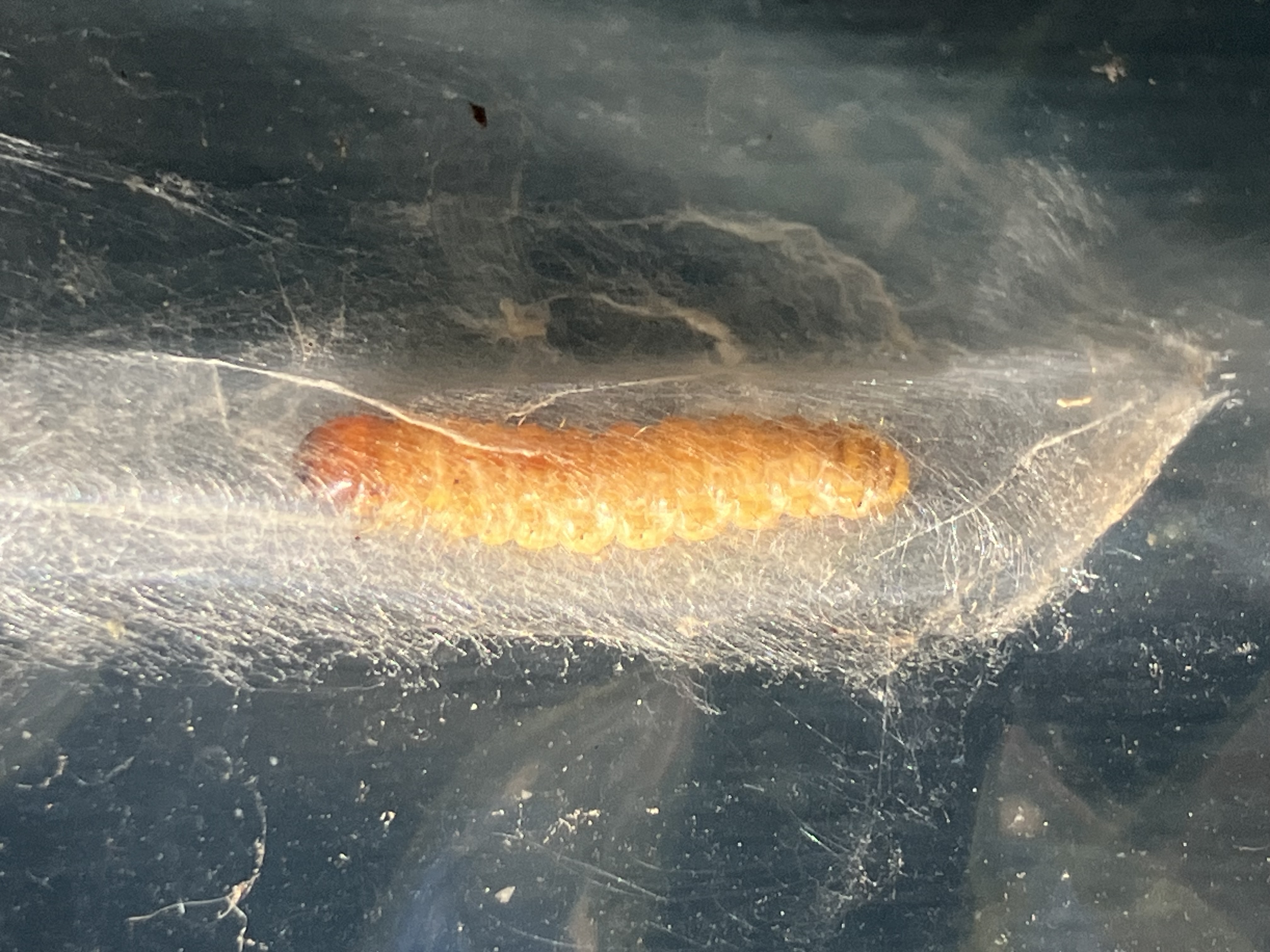 | Recorded by: Jim Petranka and Becky Elkin on 2023-06-28 Madison Co. Comment: A larva that was beginning to pupate was found in a silken cocoon that was covered in frass as seen on the far left of this image. |