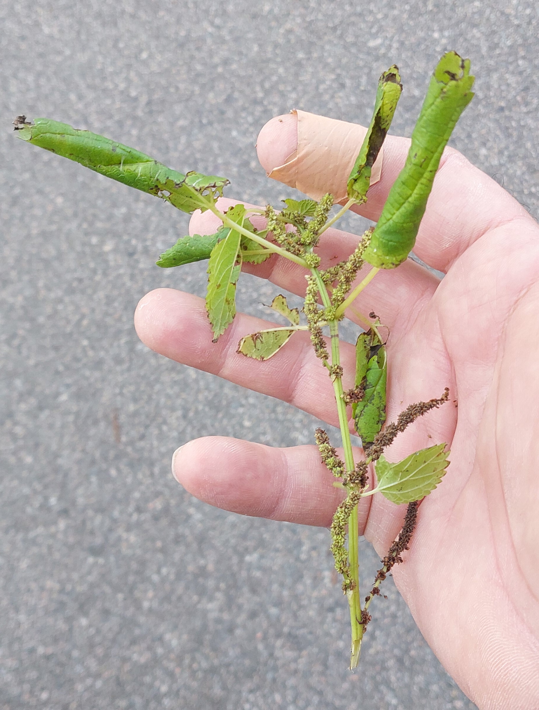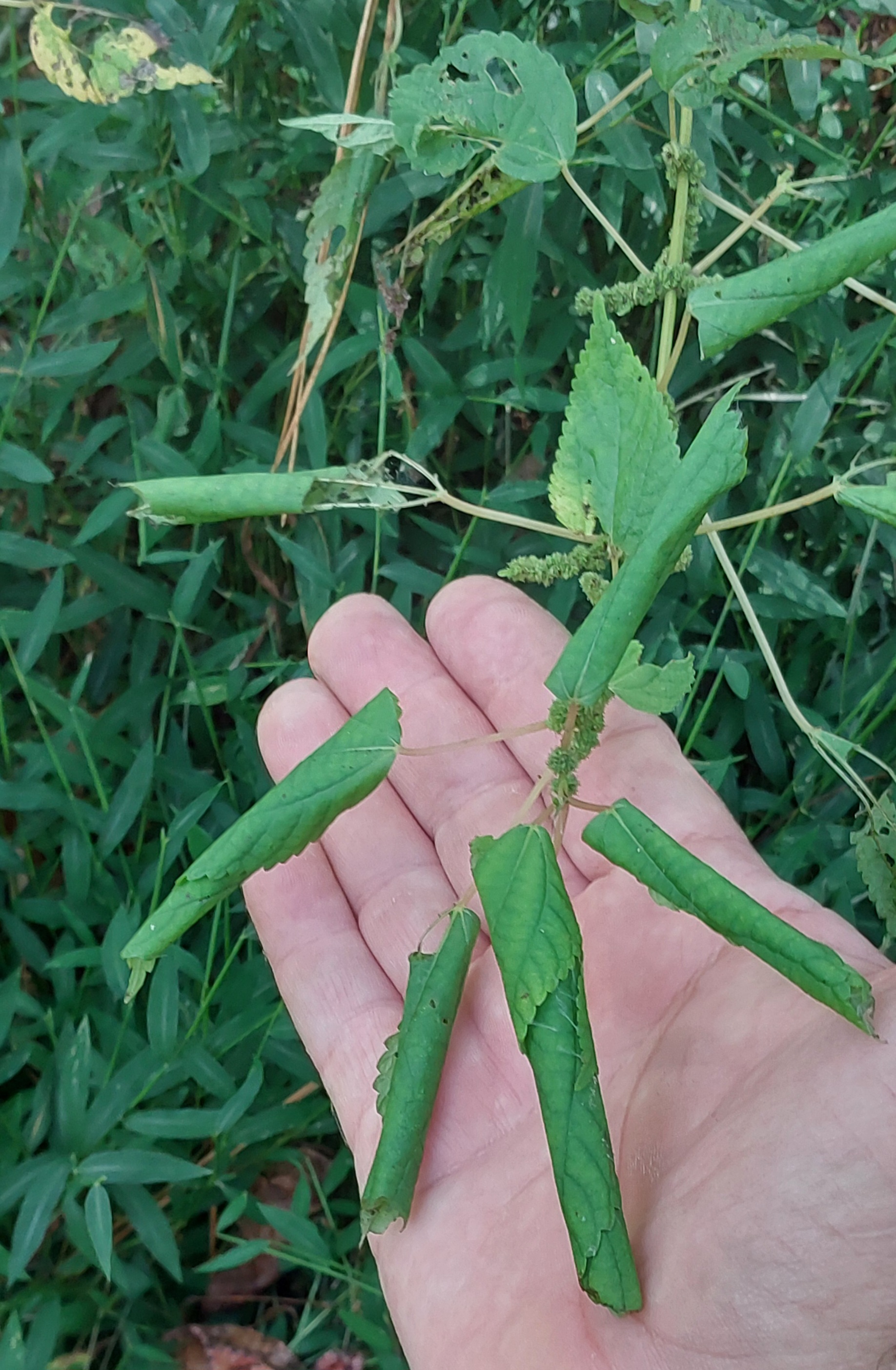| Recorded by: Jim Petranka, Mark Basinger and Becky Elkin on 2024-09-21 Madison Co. Comment: Unoccupied leaf rolls were on Boehmeria cylindrica. |