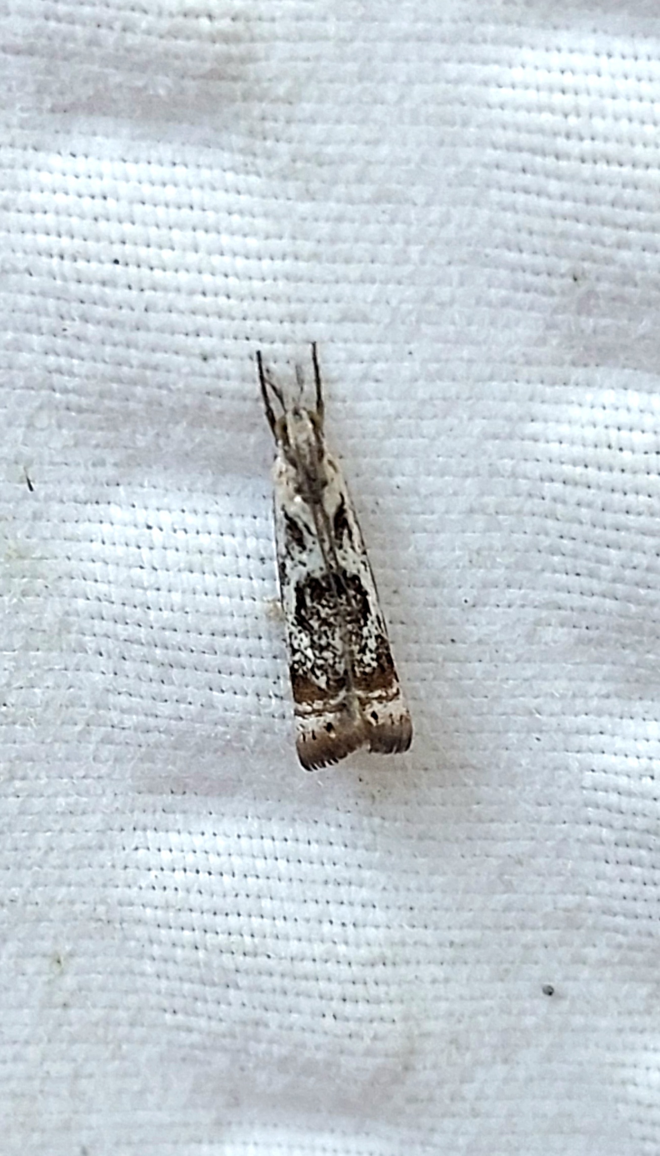 Larval Host Plants: The hosts are poorly documented. Robinson et al. (2010) reported that the larvae feed on grasses, including corn, but this may reflect earlier work by Felt (1894) who reported that the larvae feed on 'grass'. Ainslie (1916) noted that not a single species of Crambus or Microcrambus had been successfully reared to adults other than those of his own, and he was unsuccessful in getting the hatchlings of M. elegans to feed on grasses or other potential hosts that were provided as food. In later studies in the laboratory, Ainslie (1924) reported that the larvae readily fed on mosses and would only eat grasses as larger larvae, and only when forced to. These observations suggest that mosses may be the primary hosts in the wild, at least during the early larval stages. Allyson (1986) was successful in raising the hatchlings to adults on corn silk rather than grasses. - View