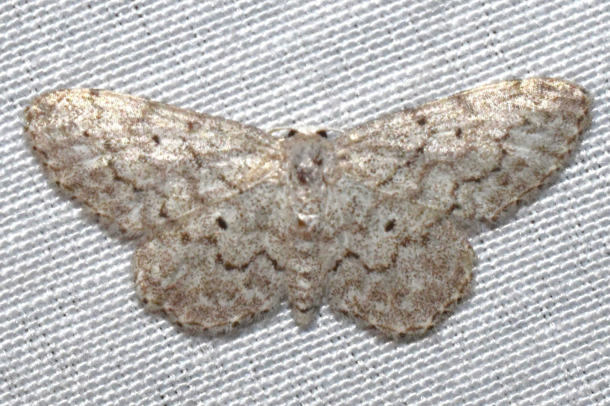 As described by Walker (1861, as Acidalia ostentaria), this species has a grayish white ground color, speckled with black. As in several other members of the Sterrhini, the head is blacksh except for inter-antennal bar. The wings are "hardly elongated", with the forewings "rectangular at the tips: and the "hind part of the exterior border rather oblique". Both the antemedian and postmedian lines are irregular, black, and very distinct, while the median and subterminal lines are usually indistinct; the postmedian, in particular is often represented by a series of black points that are sometimes connected to form a more continuous, if heavily accented line. The discal dots are also black, somewhat pointed, and fairly large. A series of cinerous (ashy gray) lunules runs along the margins of the wings (forming a broken adterminal line), with a series of black marginal points situated in between the lunules and located closer to the margin. Several other members of the Sterrhini are similar in size and color, with Lobocleta ossularia probably the most likely to be confused with ostentaria in our area, with its whitish-gray ground color and an undulating postmedian line composed of separate points. Ossularia, however, has a more elongated and pointed forewing and typically does not have the alternating marginal rows of lunules and dots that are characteristic of ostentaria. Ossularia also often has a diffuse gray median line that is usually missing or poorly developed in ostentaria.