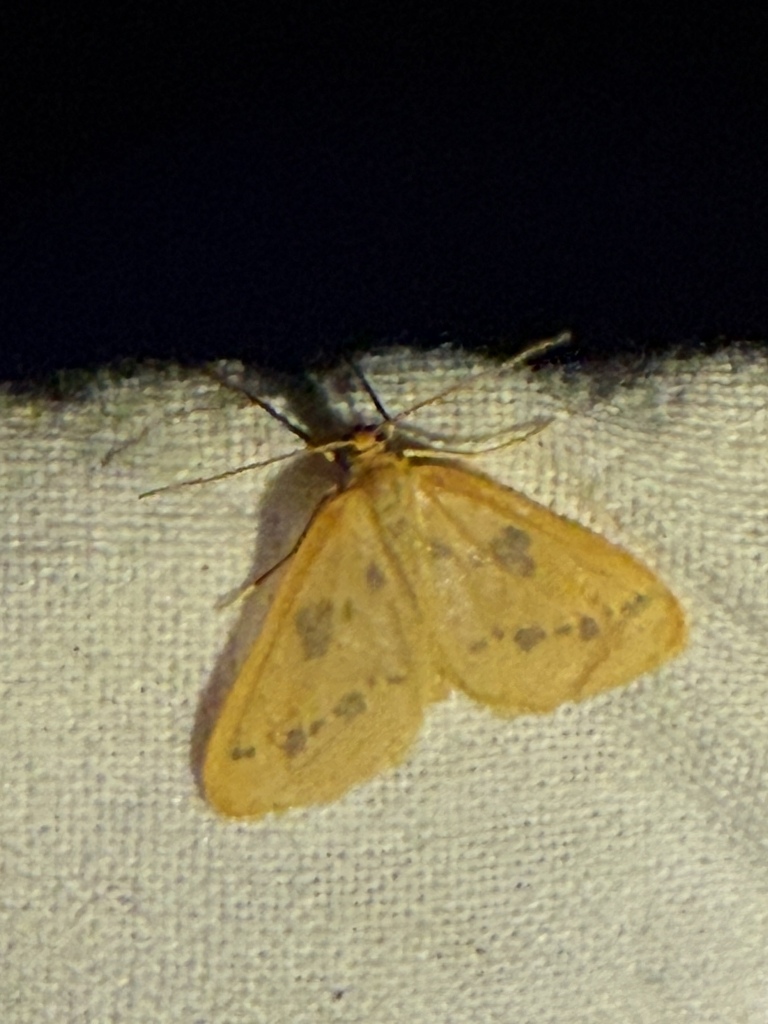 A small, delicate, yellow Geometrid with dusky spots. Similar but smaller than the more common