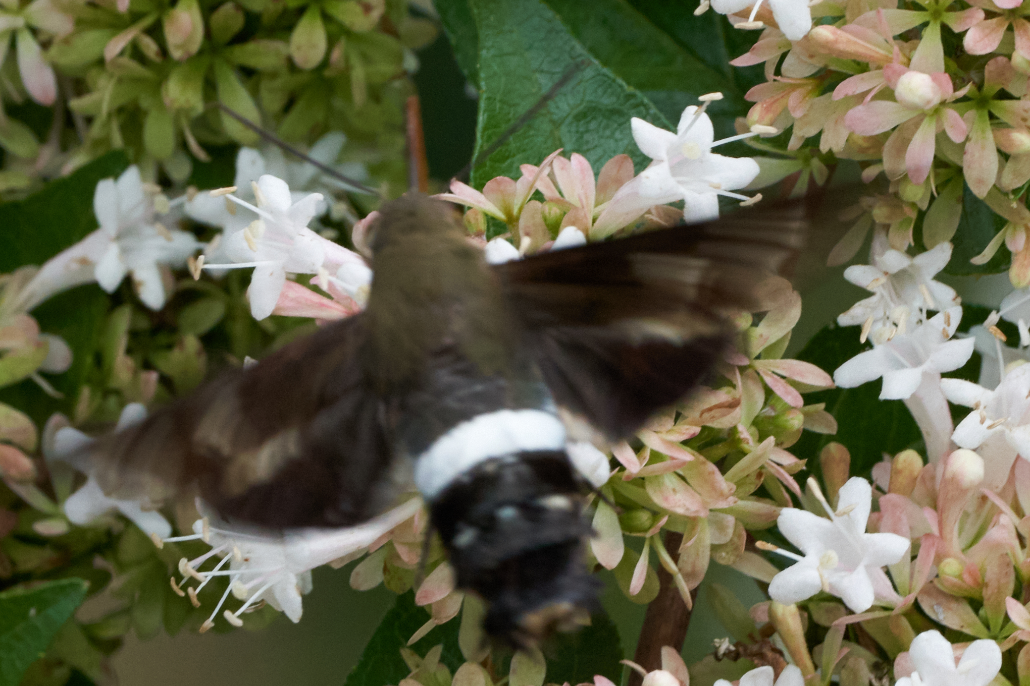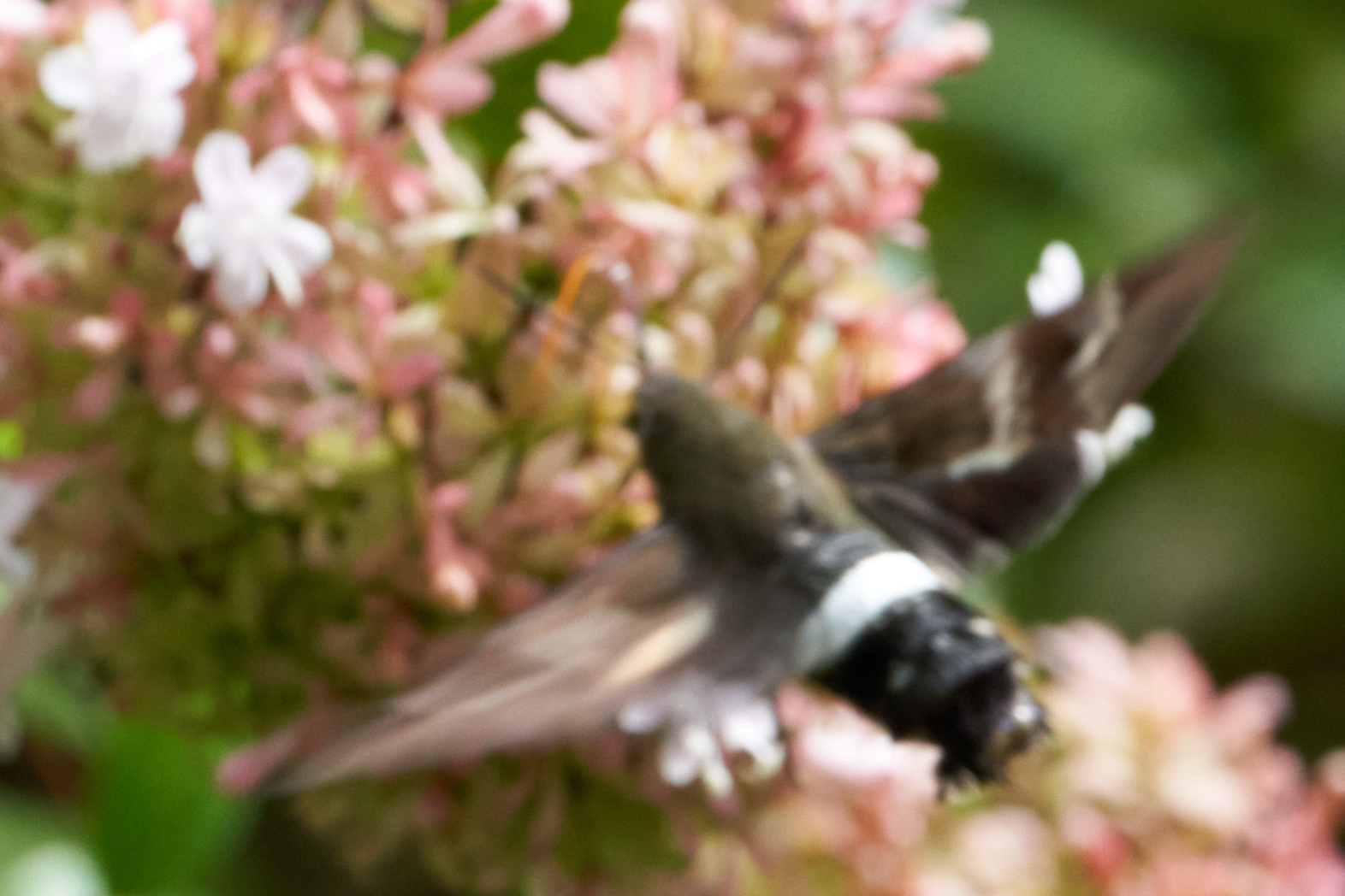 | Recorded by: Linda Watson on 2021-08-18 Wake Co. Comment: iNat record - Very fast and large moth visiting many flowers on a Abelia chinensis. It was about 1.5 inches long. David George saw my observation on iNaturalist and suggested that I submit it here. https://www.inaturalist.org/observations/91642535 |