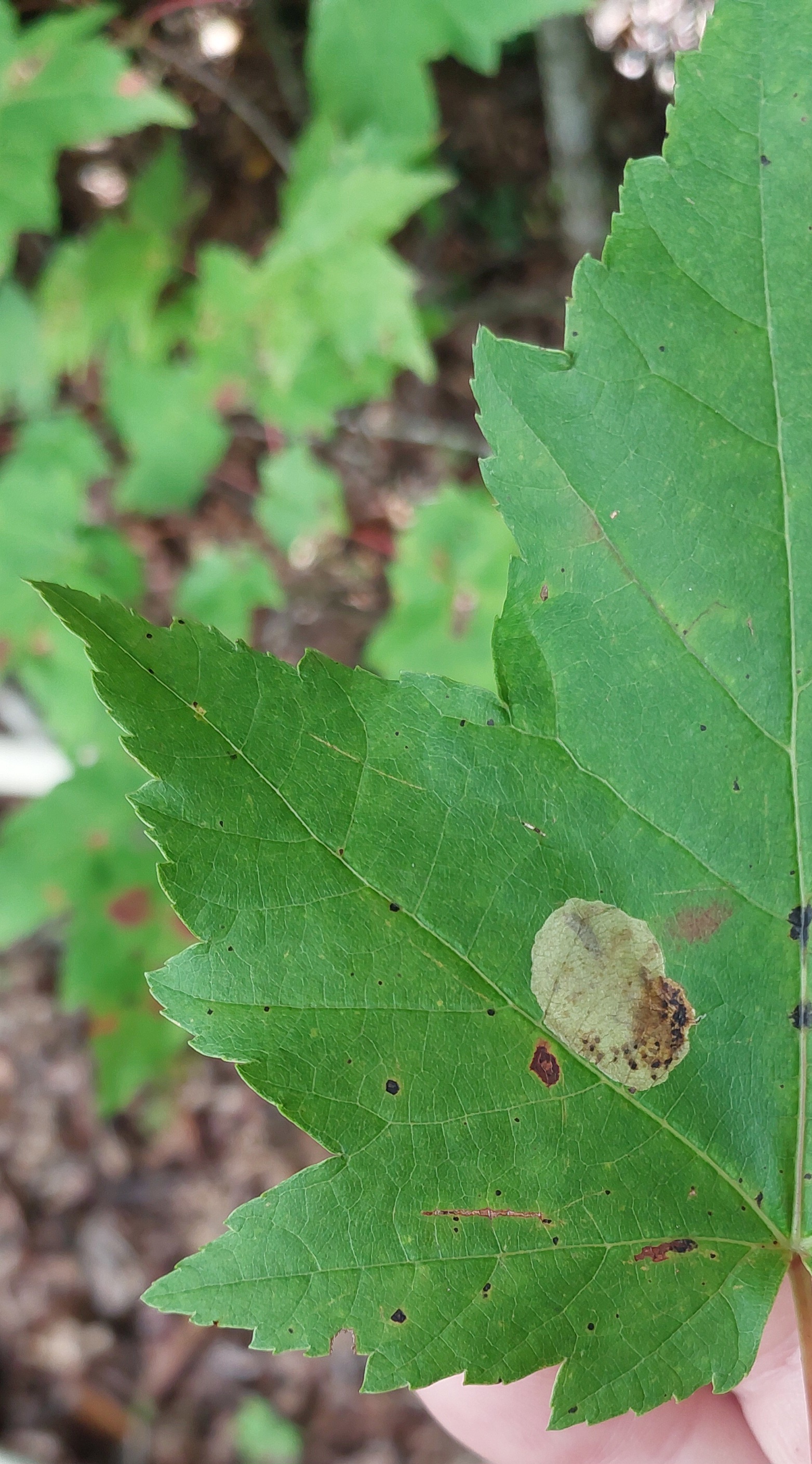 | Recorded by: Jim Petranka and Marilyn Westphal on 2025-08-18 Henderson Co. Comment: Unoccupied mine was in Red Maple leaf. |