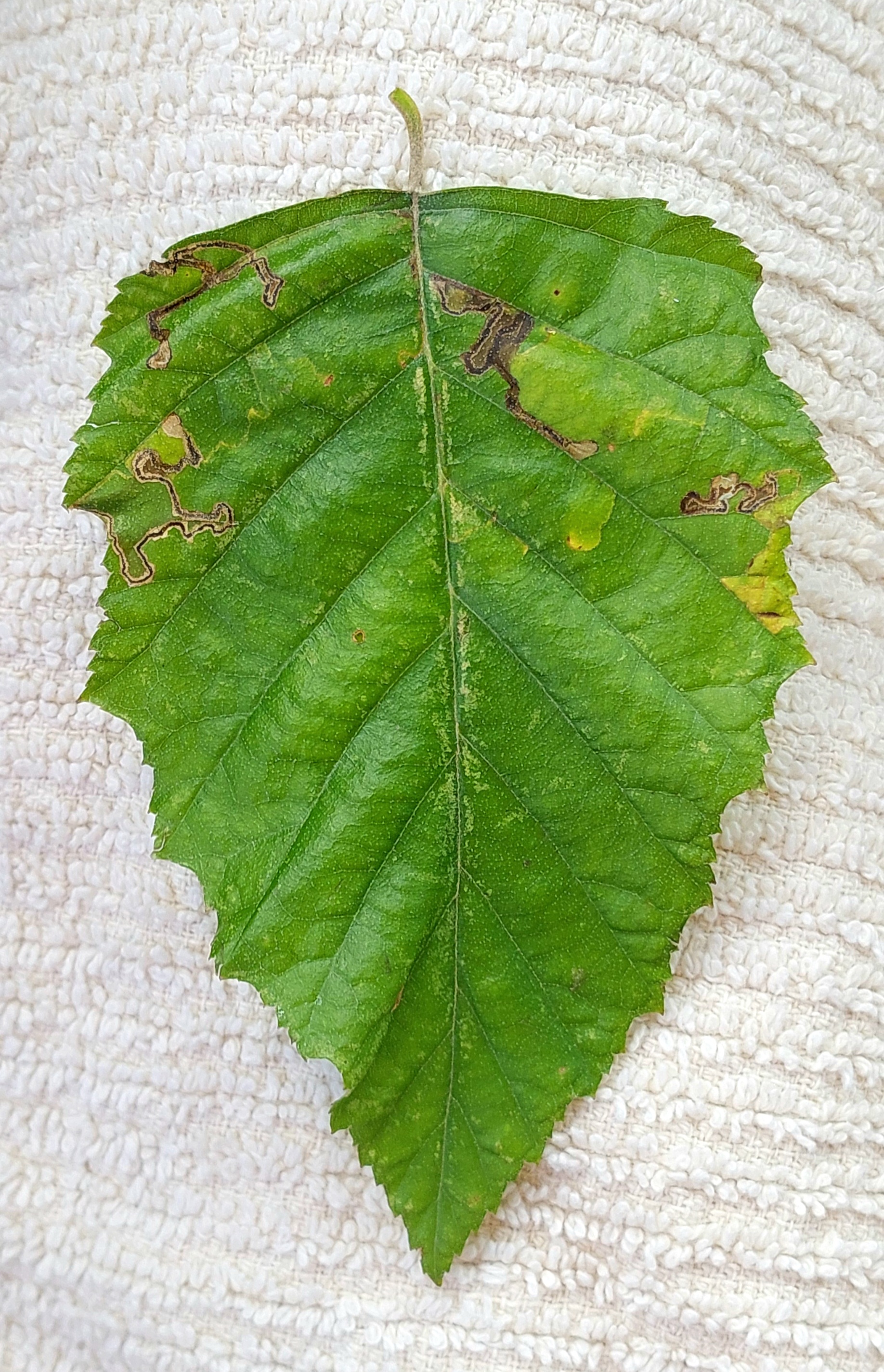 | Recorded by: Jim Petranka on 2020-10-26 Madison Co. Comment: A backlit image of an unoccupied leaf mine on River Birch. |