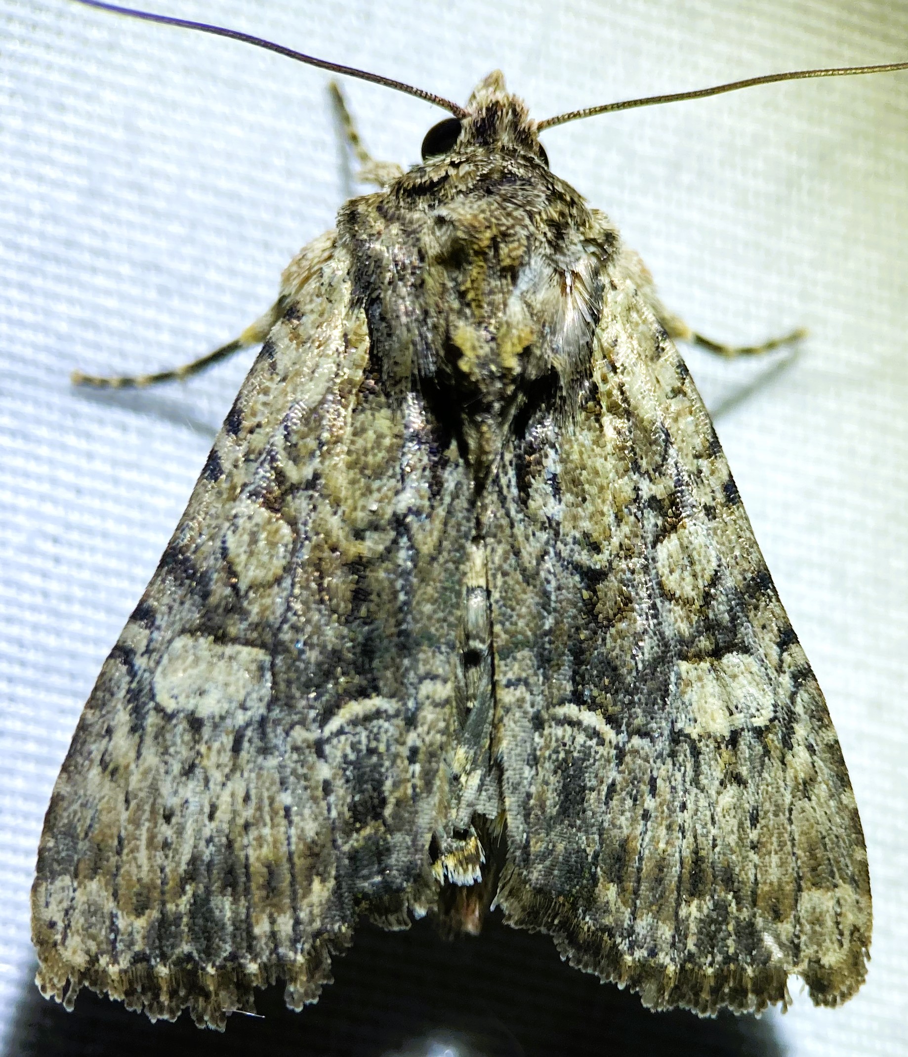 A medium-sized, dark grayish-brown Noctuid, with females possessing a paler, yellowish basal area. The ground color is brownish gray. The antemedian and postmedian lines are double and filled with a somewhat paler gray, as are the orbicular and reniform spots. A blackish basal dash is present along with similar streaks in the fold in the medial, subterminal and terminal areas. The subterminal line is pale and irregular and lacks the sharply defined w-mark that is frequently found in members of this genus. The hindwings are darker fuscous (Mikkola et a., 2009).