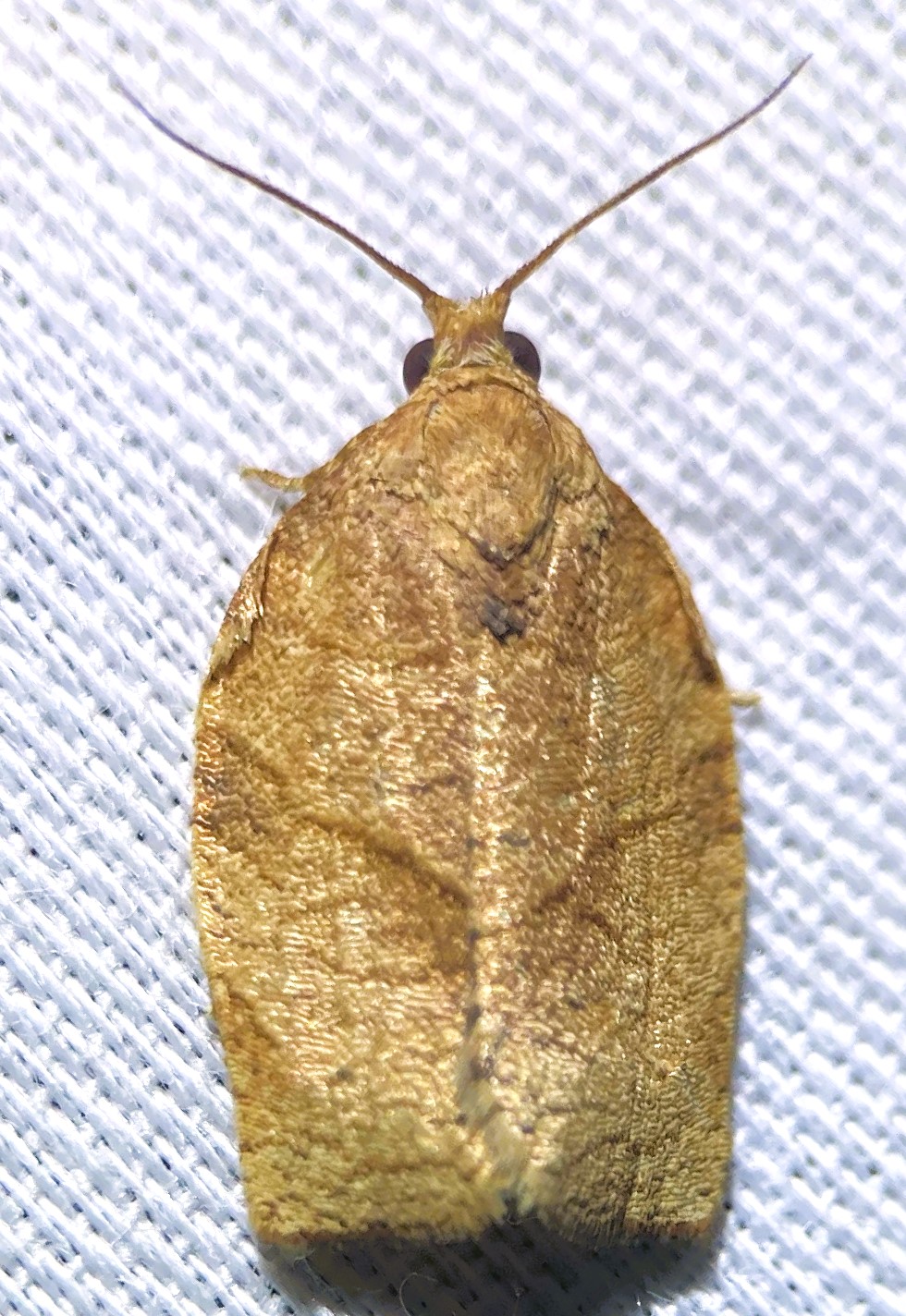 The adults are attracted to lights and the larvae can be found on apples, oaks, and other host species.
