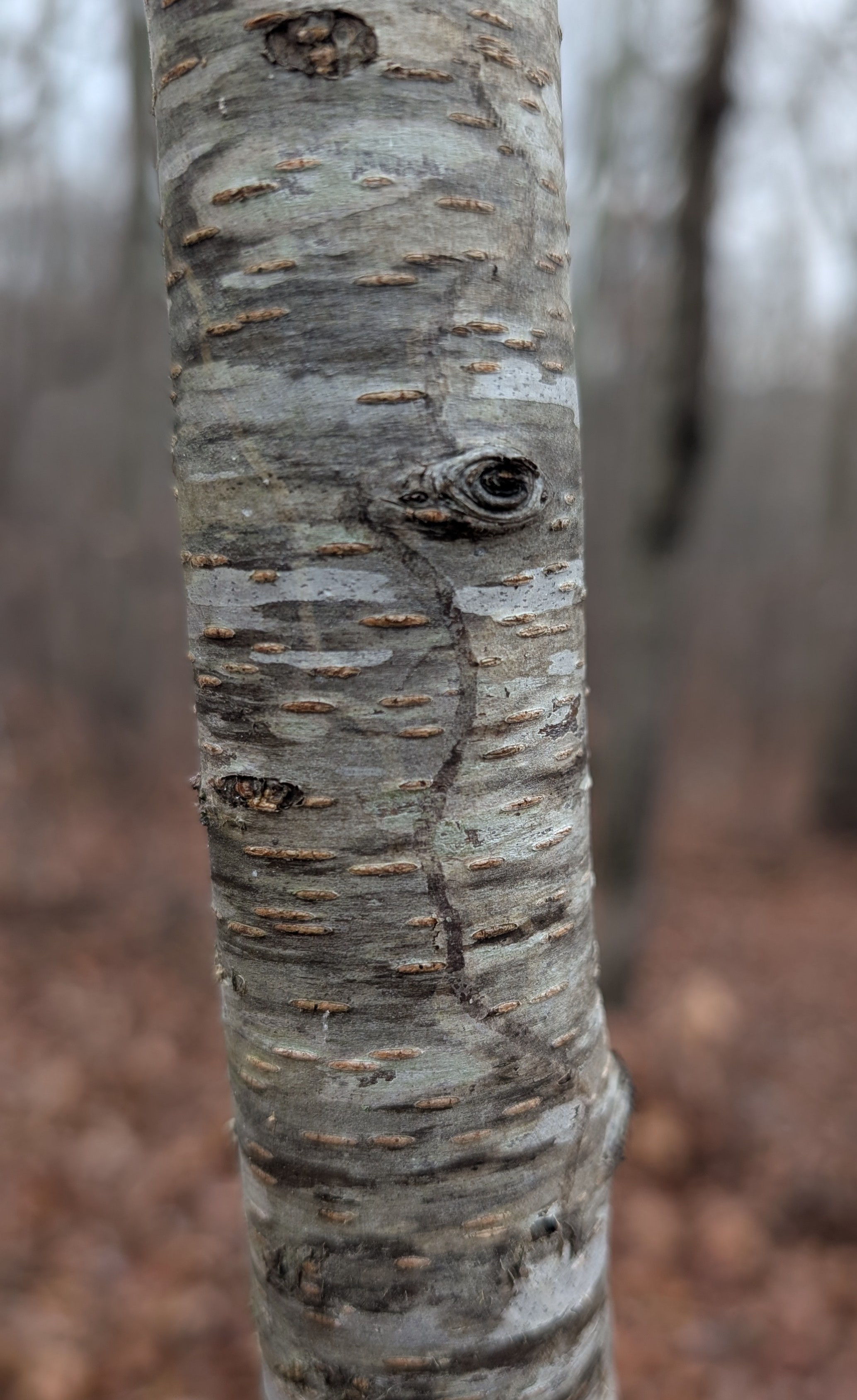 Recorded by: Tracy S. Feldman on 2017-01-10 Scotland Co. Comment: This species makes elongated mines just under the epidermis of the branches and trunks of Prunus serotina. Note the mine near the center of the photograph.