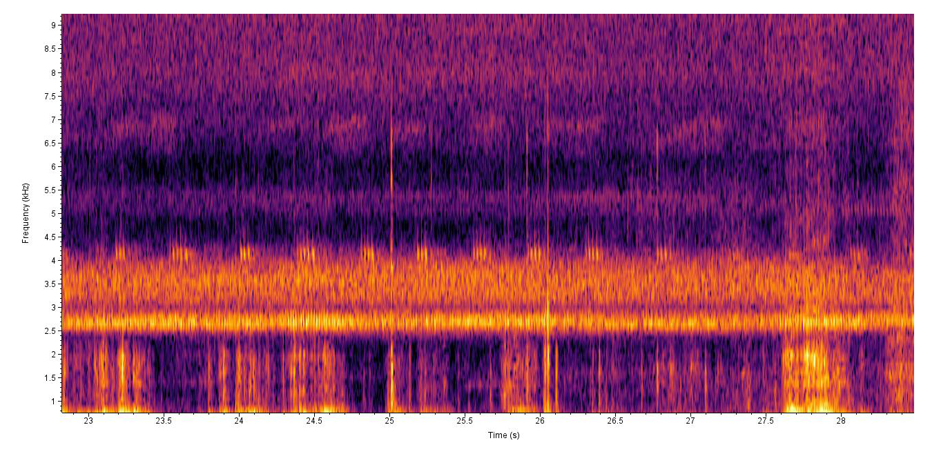 Recorded by: Jim Petranka Madison Co. 2021-04-27 Individuals were singing along a moved roadway at the interface of the grassy area and brushy area on the bank; F. rubens was calling along the same stretch on road. Recorded at 81 degrees; 5-6 chirps per second; 3 pulses per chirp; around 4,000 KHZ.