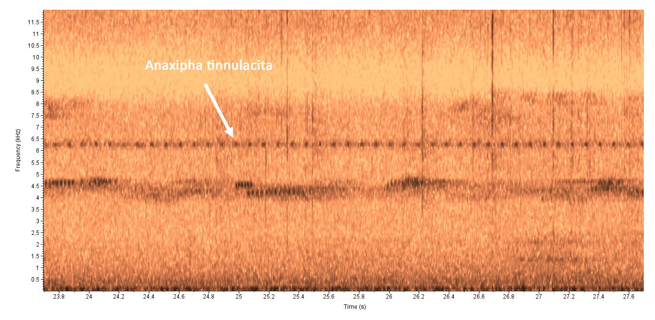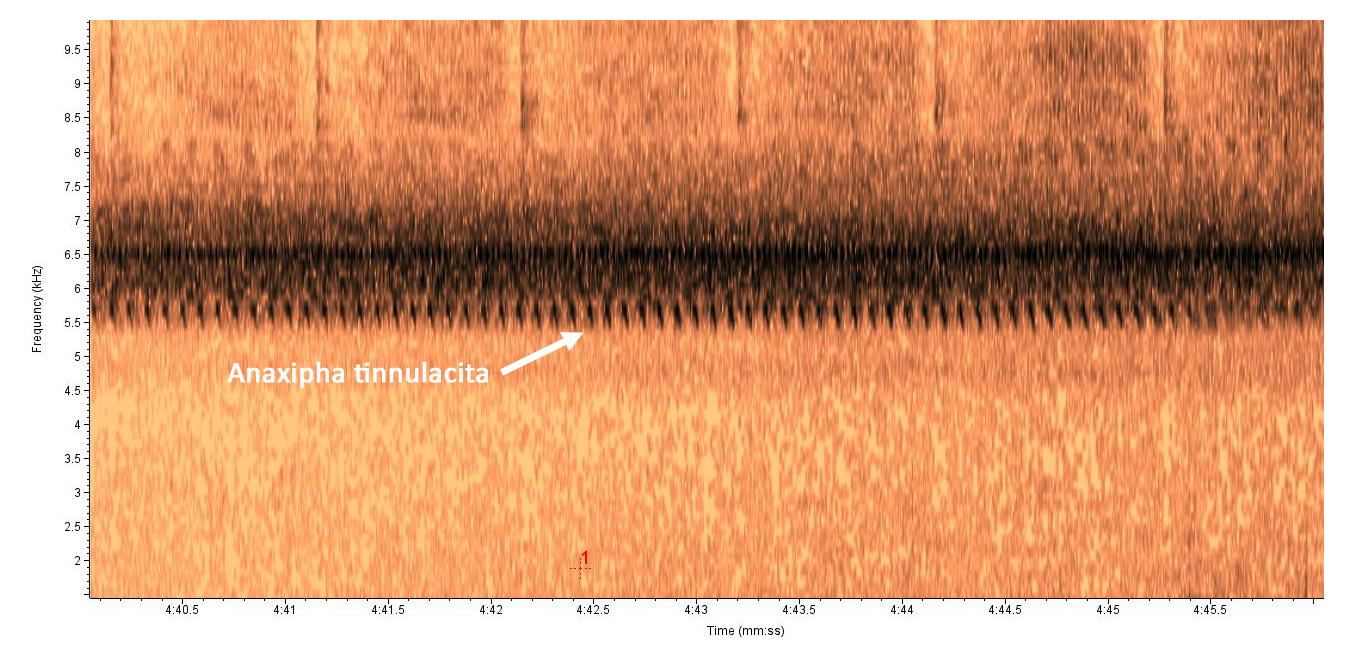 Recorded by: Steve Hall Orange Co. Comment: Anaxipha tinnulacita heard singing outside the house; no other members of this genus have been recorded at this site