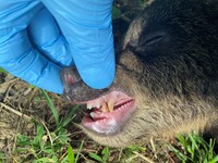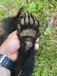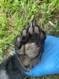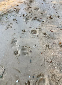 ![]() Photo 109 HABE Scat found on paved path to bear island beach | ![]() Photo 110 HABE Tracks found headed east towards Bogue Inlet | ![]() Photo 111 HABE Hind leg track | ![]() Photo 112 HABE |
